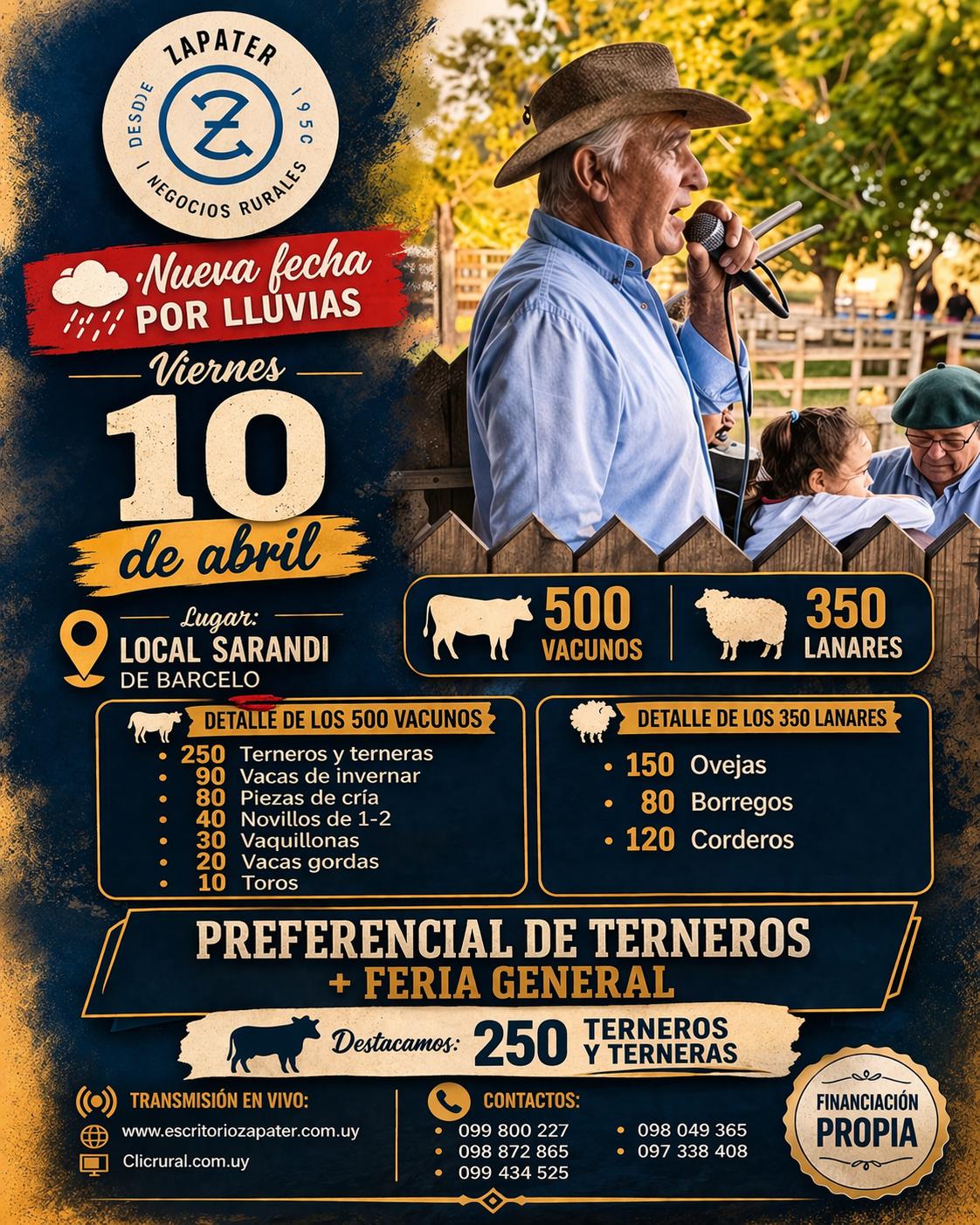 En ESCRITORIO ZAPATER, realizamos remates ferias mensuales en los departametos de Tacuarembó y Cerro Largo. Feria con financiación de BROU